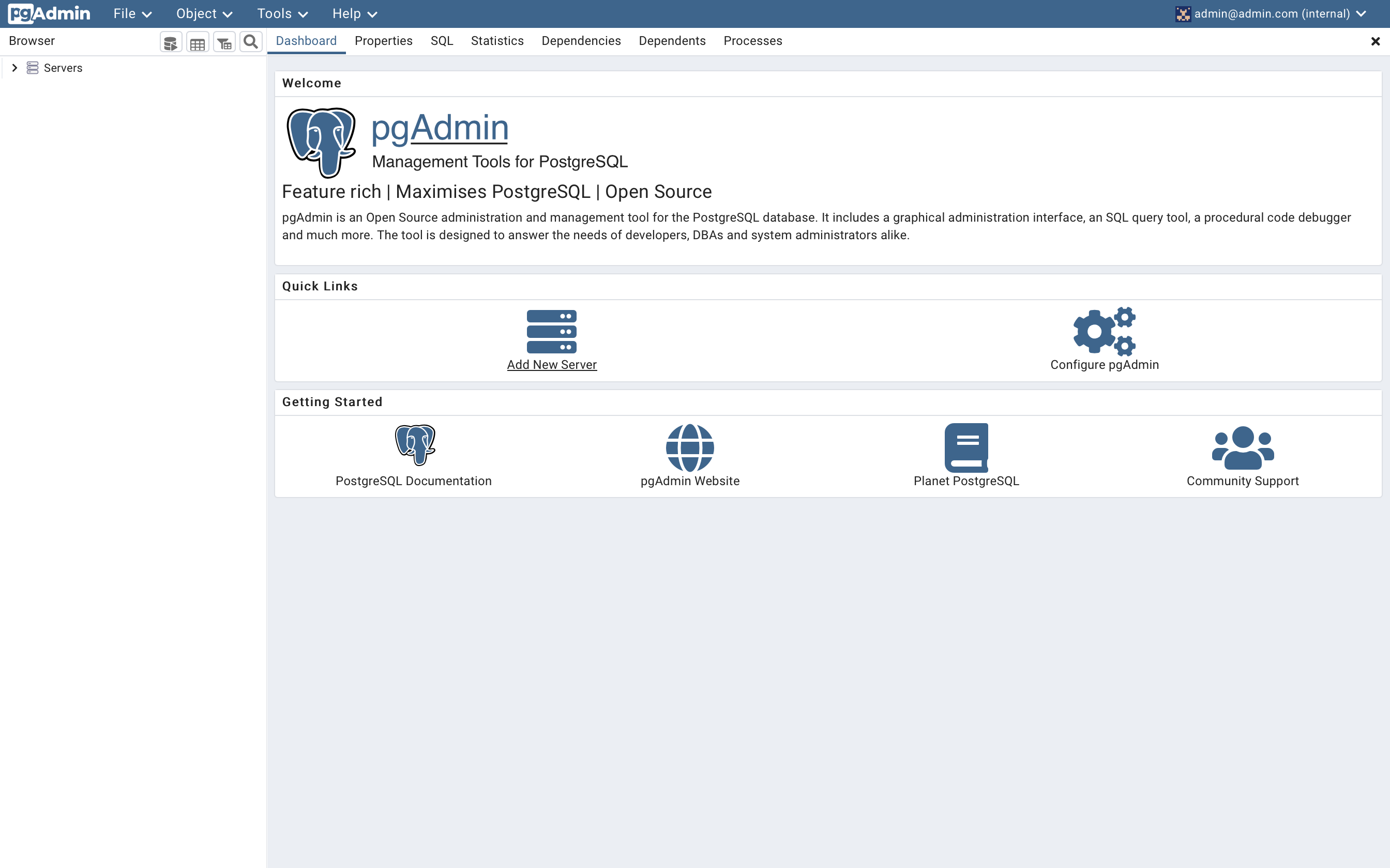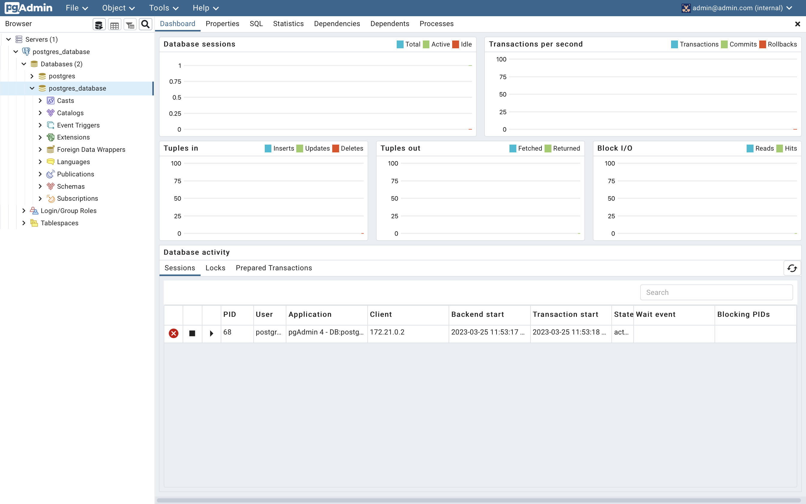 Secondly, it's beneficial to have an admin interface in place to facilitate the management of the database. For example, deploying a tool like pgAdmin alongside the PostgreSQL database provides a user-friendly web-based interface for tasks such as creating tables, running queries, and monitoring performance metrics.